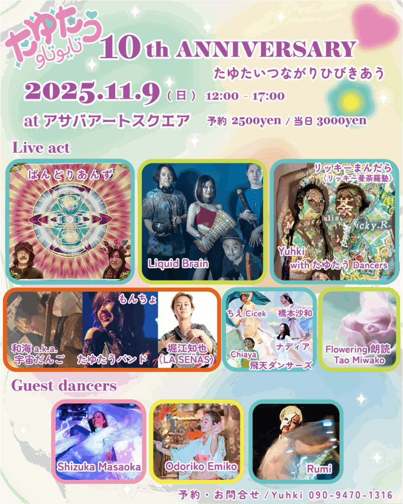 たゆたうベリーダンスクラスの10周年記念として、ロゴ、Tシャツ、アクリルキーホルダー、チラシデザインの制作をしました。